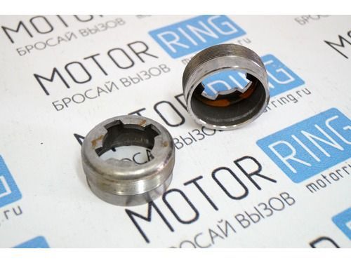 Для установленной у меня гайки сапога амортизационной стойки, нужен огромный ключ. Таких у меня не оказалось. Пробовал до конца раздвинуть свой газовый – мал, не подходит. На ум пришло, только бить в ребро гайки зубилом, по ходу закрутки её в сапог. Что собственно и было сделано.