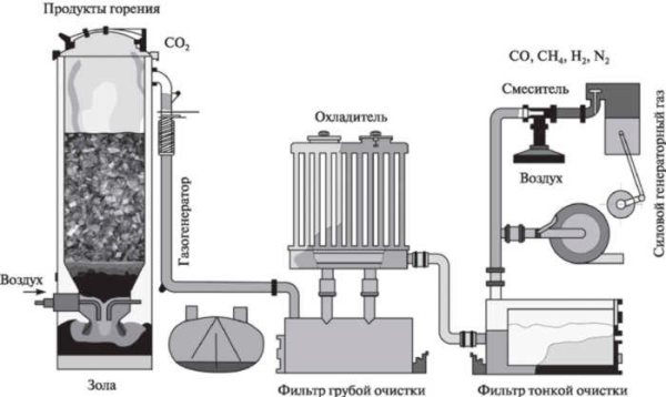 После того как газ проходит тонкую очистку, он попадает в специальное устройство, где происходит обогащение газа воздухом и подача в цилиндры двигателя. В целом, принцип работы газогенератора весьма прост.